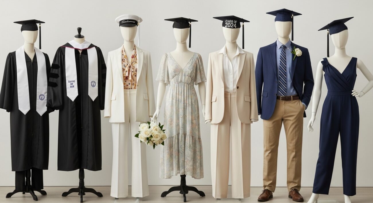 It is easy to think, “I’m just going to be covered by a giant, shapeless polyester robe, so why does it even matter?” But let me tell you a quick story. On my own graduation day, I tried to be “fancy” by wearing a heavy, high-quality wool suit because I wanted to look like a serious adult. The problem? My ceremony was in the middle of June, outdoors, with nearly 100% humidity. By the time they finally called my name, I didn’t feel like a serious adult; I felt like I was melting inside a portable sauna.