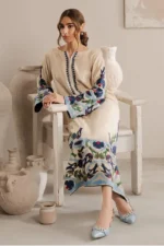 🌟 A stunning Cream-colored embroidered 3-piece suit crafted in premium Dhank fabric, paired with a beautifull y draped chiffon dupatta — designed to make you stand out with effortless charm.